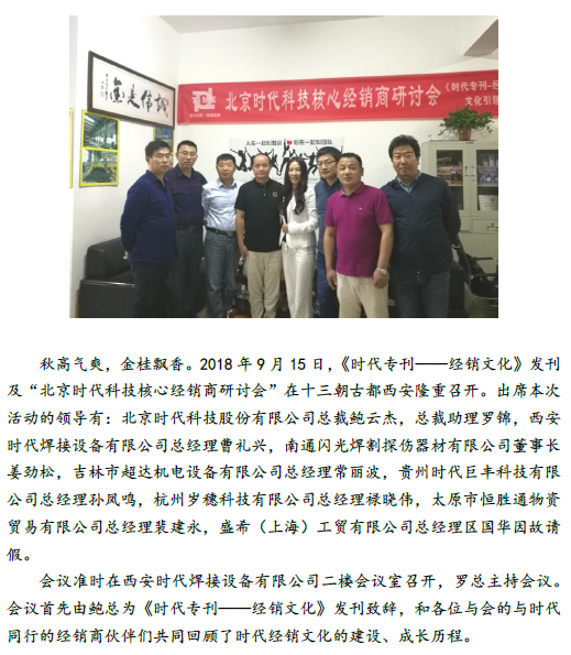 《時代專刊——經銷文化》發刊及北京時代科技核心經銷商研討會